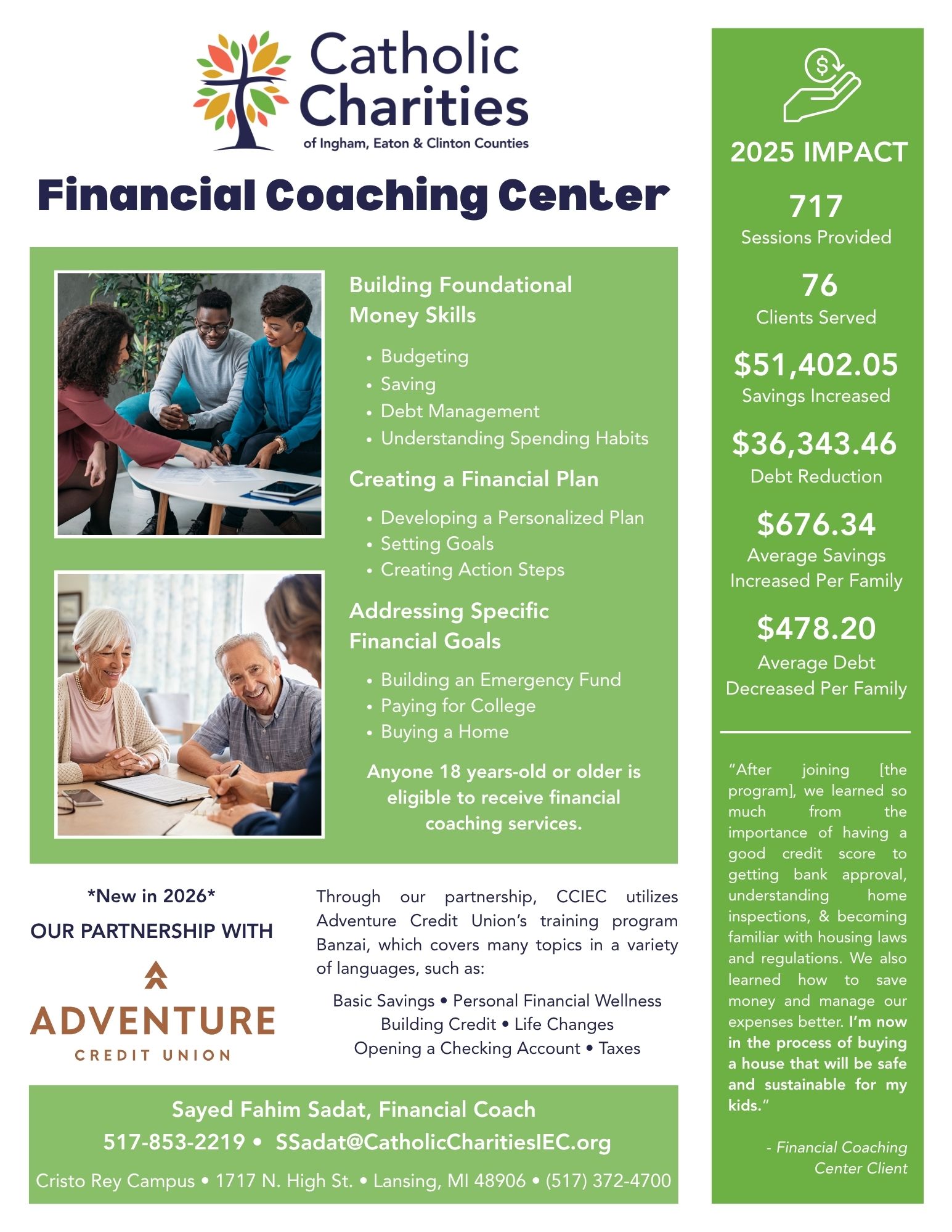 Anyone 18 years-old or older is eligible to receive financial coaching services.